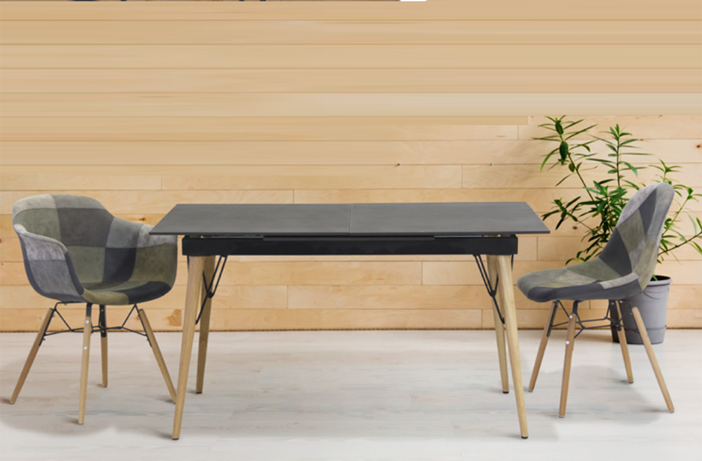 Powder coated metal and beech wood frame, padded shell, fabric covering
