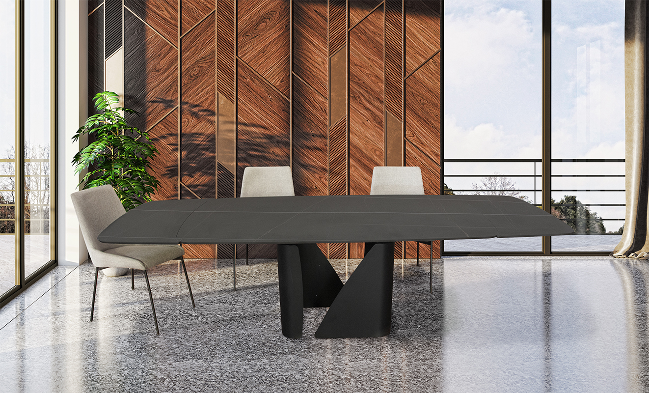 Struttura in metallo verniciato, piano allungabile in gres porcellanato smaltato