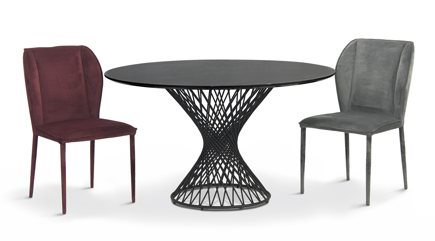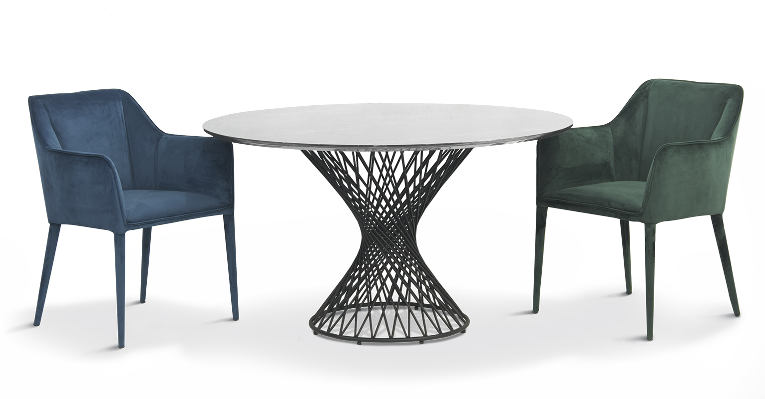 Struttura in metallo verniciato, piano in marmo sintetico.