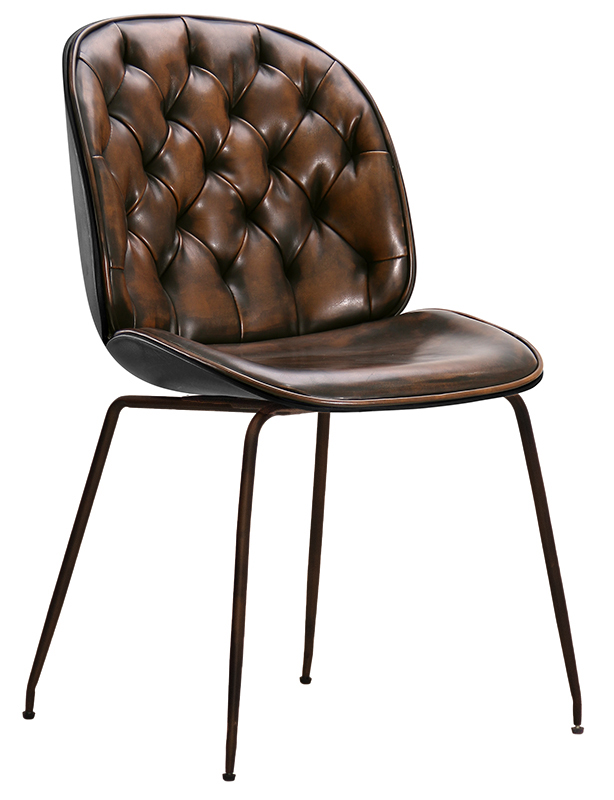 Struttura in metallo verniciato, scocca imbottita in ecopelle anticata