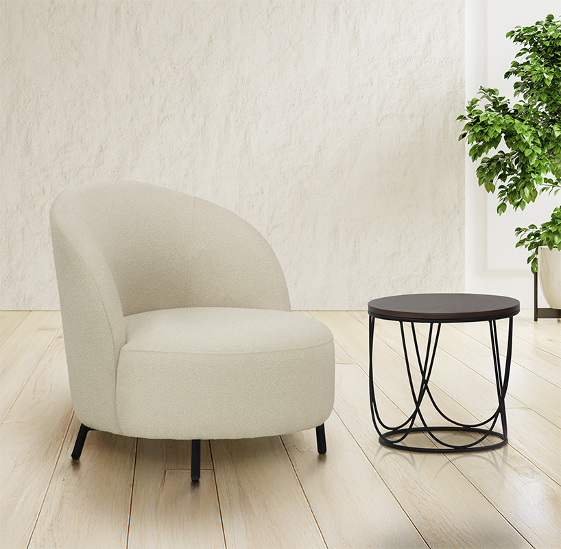 Struttura in metallo verniciato, seduta e schienale imbottiti, rivestimento in tessuto