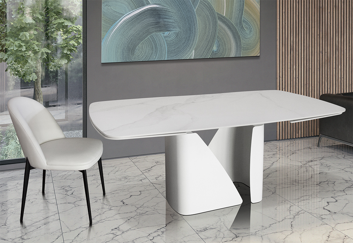 Struttura in metallo verniciato, piano allungabile in gres porcellanato smaltato