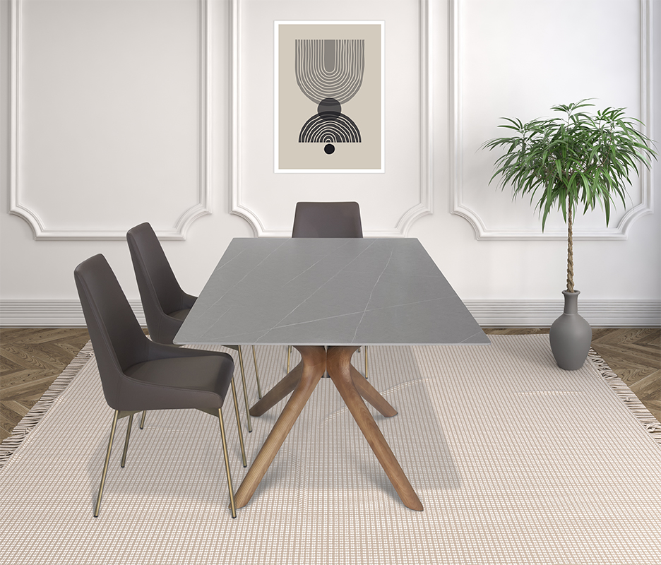 Struttura in metallo verniciato e legno, piano in gres porcellanato smaltato