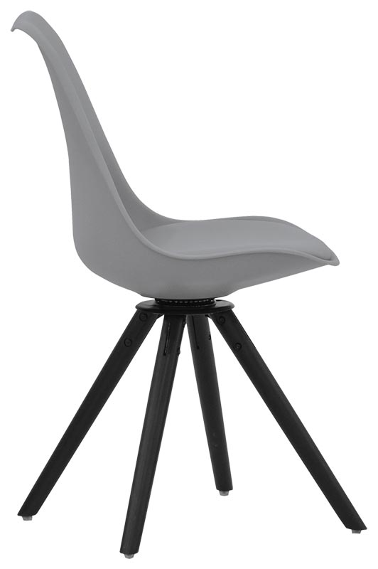 Struttura in legno di faggio e metallo, seduta girevole, scocca in polipropilene, cuscino in ecopelle.