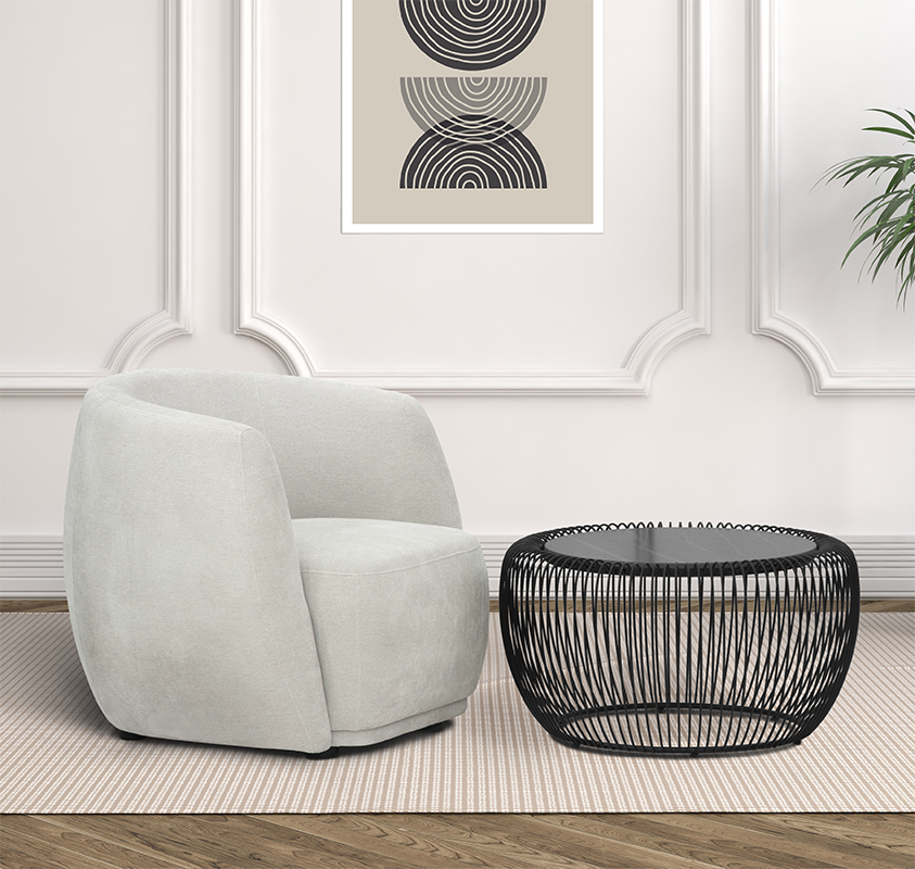 Struttura in metallo e legno, seduta e schienale imbottito, rivestimento in tessuto